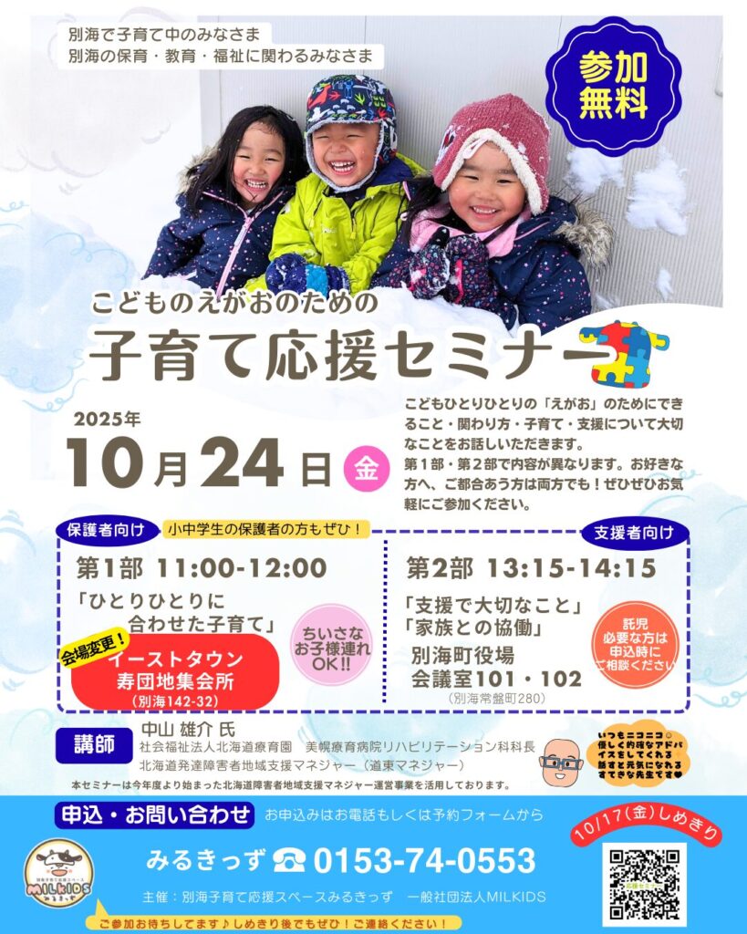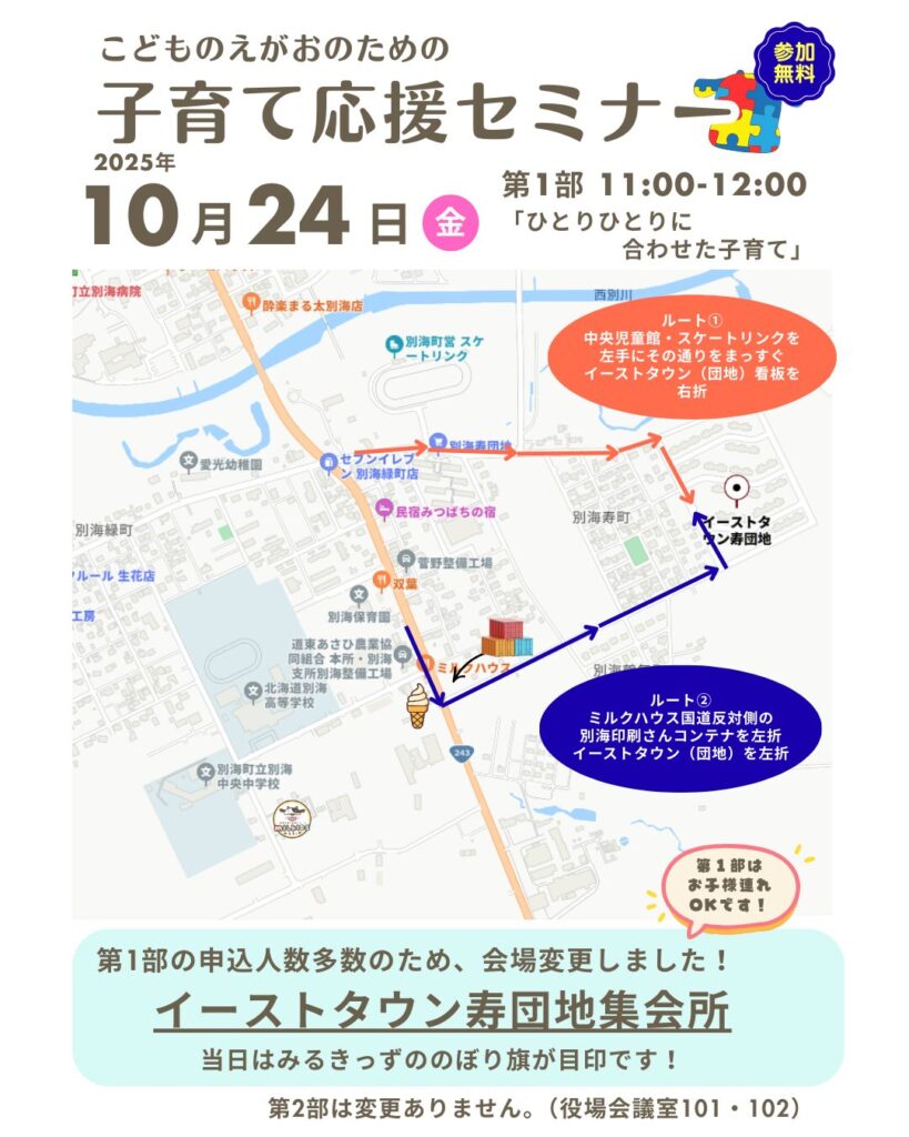 第1部は申し込み多数のため、「イーストタウン寿団地集会所」に会場変更しました。ご確認ください(ページ下に地図のせました!)また、別海町の方優先とさせていただきます。